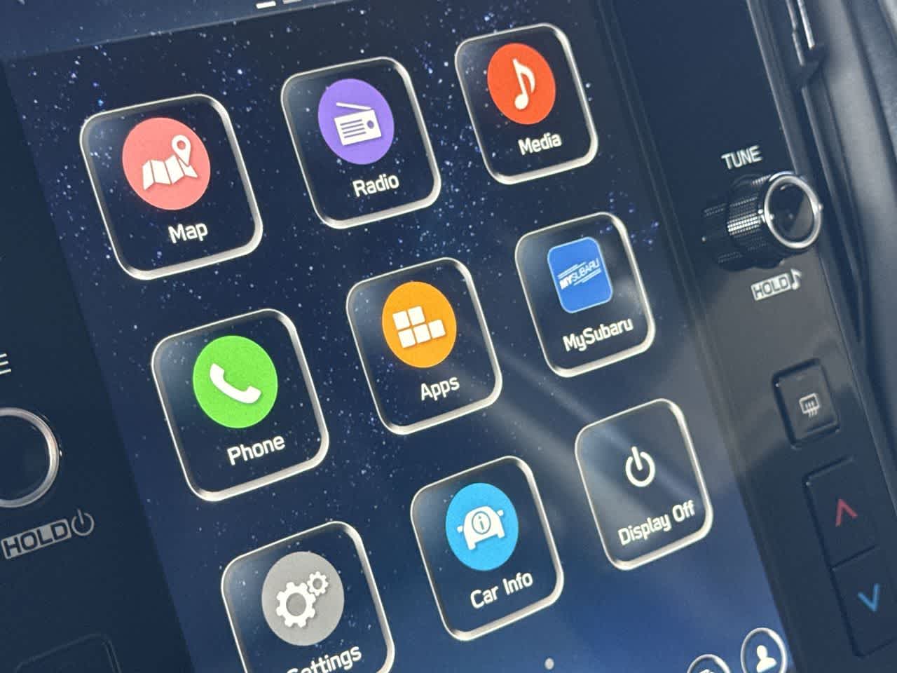 - Radio: Subaru 11.6" Multimedia Navigation System -inc: valet mode, AM/FM stereo, HD Radio, multi-touch gesture high resolution display screen, voice activated controls and navigation, Bluetooth® audio streaming and hands-free phone connectivity, Bluetooth® hands-free SMS text messaging connectivity, TomTom navigation software w/what3words, iPod control capability, smartphone integration: wired and wireless Android Auto w/full screen view and wireless Apple CarPlay w/full screen view, USB and Over The Air (OTA) audio system update, TomTom navigation system update: USB/map Over-the-Air (OTA) (3 years free map updates), steering wheel audio system and Bluetooth® control switches, harman kardon speaker system w/10 speakers (4 stacked dash panel side coaxial speakers, 2 front door speakers and 4 stacked subwoofer rear door coaxial speakers) and 432 watt equivalent maximum output amplifier, illuminated 3.5mm auxiliary input jack, illuminated front USB A and C input/charge ports, connected services operation indicator, SOS emergency assistance: red SOS button and enhanced roadside assistance: blue i-button