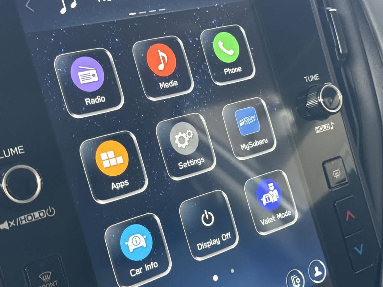 - Radio: Subaru 11.6" Multimedia Plus System -inc: AM/FM stereo, HD Radio, multi-touch gesture high resolution display screen, voice activated controls, Bluetooth® audio streaming and hands-free phone connectivity, Bluetooth® hands-free SMS text messaging connectivity, iPod control capability, smartphone integration: wired and wireless Android Auto w/full screen view and wireless Apple CarPlay w/full screen view, USB and Over The Air (OTA) audio system update, steering wheel audio system and Bluetooth® control switches, 6 speakers (2 dash panel tweeter, 2 front door and 2 rear door), illuminated 3.5mm auxiliary input jack, illuminated front USB A and C input/charge ports, connected services operation indicator, SOS emergency assistance: red SOS button and enhanced roadside assistance: blue i-button