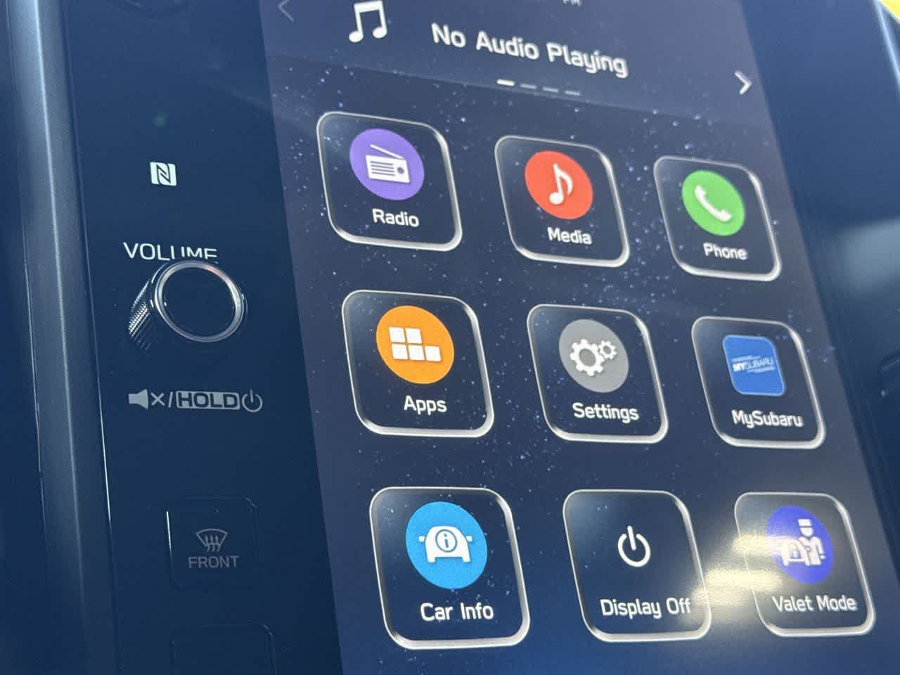 - Radio: Subaru 11.6" Multimedia Plus System -inc: AM/FM stereo, HD Radio, multi-touch gesture high resolution display screen, voice activated controls, Bluetooth® audio streaming and hands-free phone connectivity, Bluetooth® hands-free SMS text messaging connectivity, iPod control capability, smartphone integration: wired and wireless Android Auto w/full screen view and wireless Apple CarPlay w/full screen view, USB and Over The Air (OTA) audio system update, steering wheel audio system and Bluetooth® control switches, 6 speakers (2 dash panel tweeter, 2 front door and 2 rear door), illuminated 3.5mm auxiliary input jack, illuminated front USB A and C input/charge ports, connected services operation indicator, SOS emergency assistance: red SOS button and enhanced roadside assistance: blue i-button