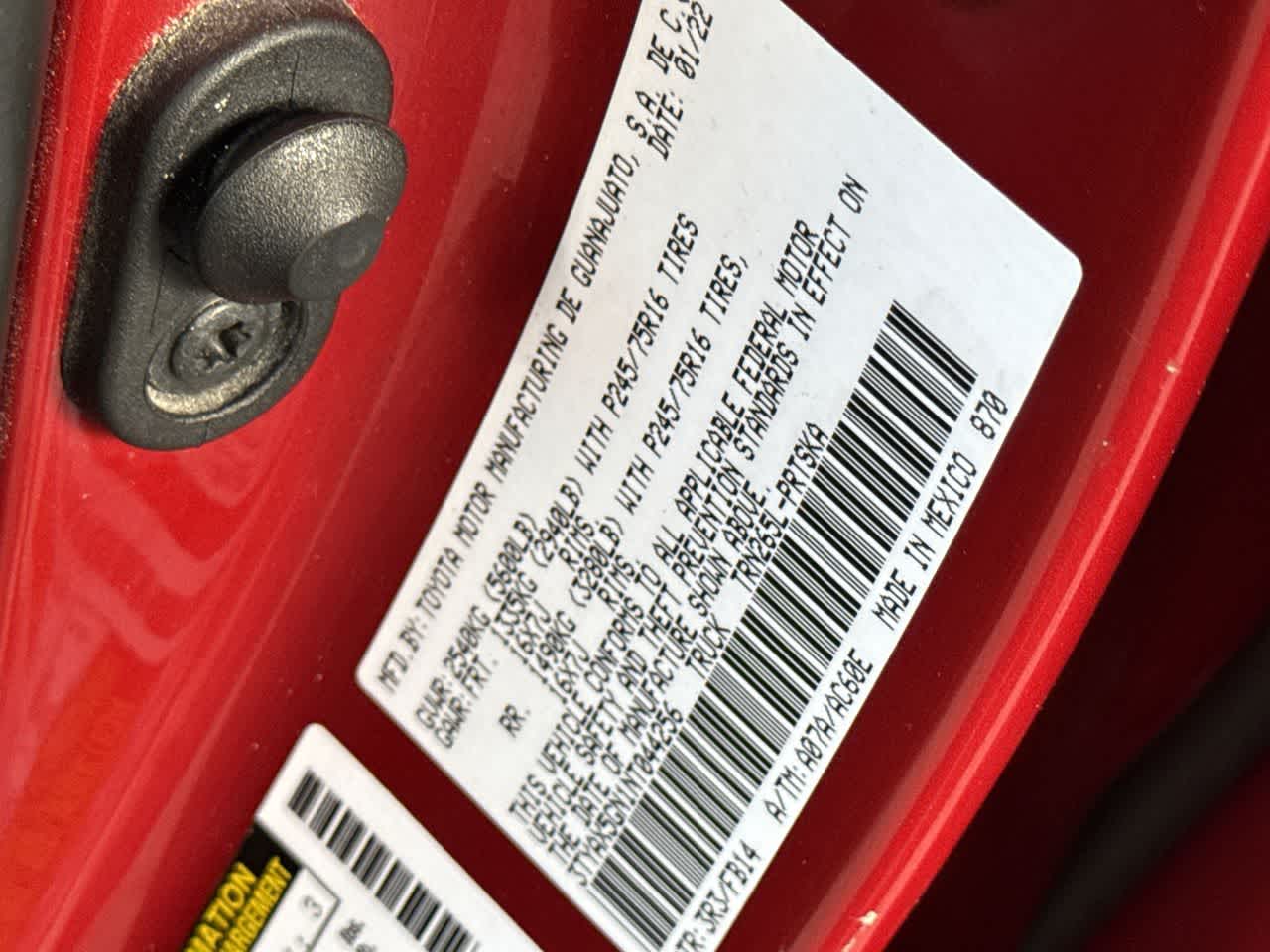 - Vehicle Name: Toyota Tacoma 2WD