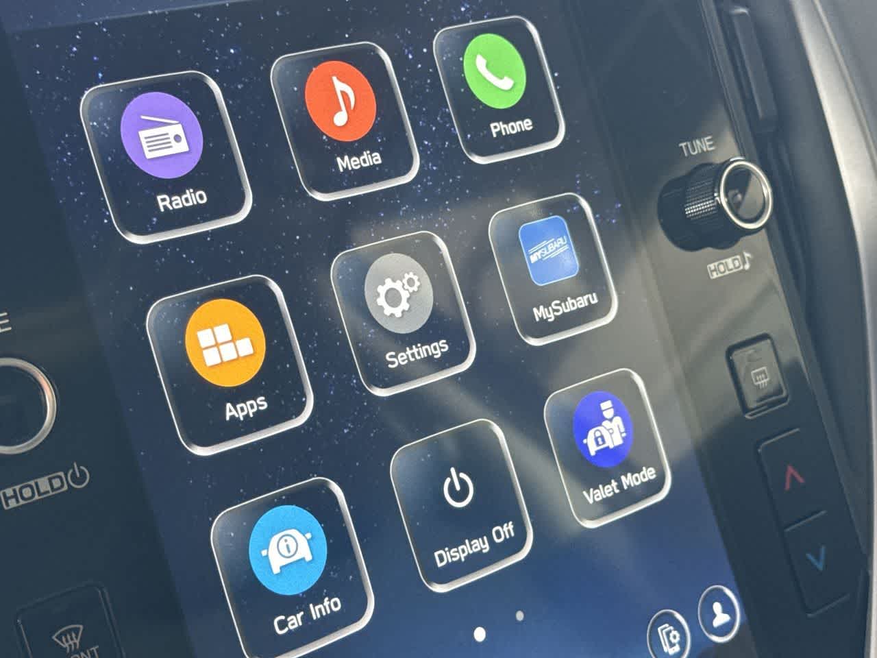 - Radio: Subaru 11.6" Multimedia Plus System -inc: AM/FM stereo, HD Radio, multi-touch gesture high resolution display screen, voice activated controls, Bluetooth® audio streaming and hands-free phone connectivity, Bluetooth® hands-free SMS text messaging connectivity, iPod control capability, SiriusXM w/360L (4 months free trial included/subscription required after), SiriusXM Travel Link (4 months free trial included/subscription required after), smartphone integration: Android Auto and Apple CarPlay w/full screen view and wireless connection, USB and Over The Air (OTA) audio system update, steering wheel audio system and Bluetooth® control switches, 6 speakers (2 dash panel tweeter, 2 front door and 2 rear door), illuminated 3.5mm auxiliary input jack, illuminated front USB A and C input/charge ports and illuminated rear USB A and C charge ports